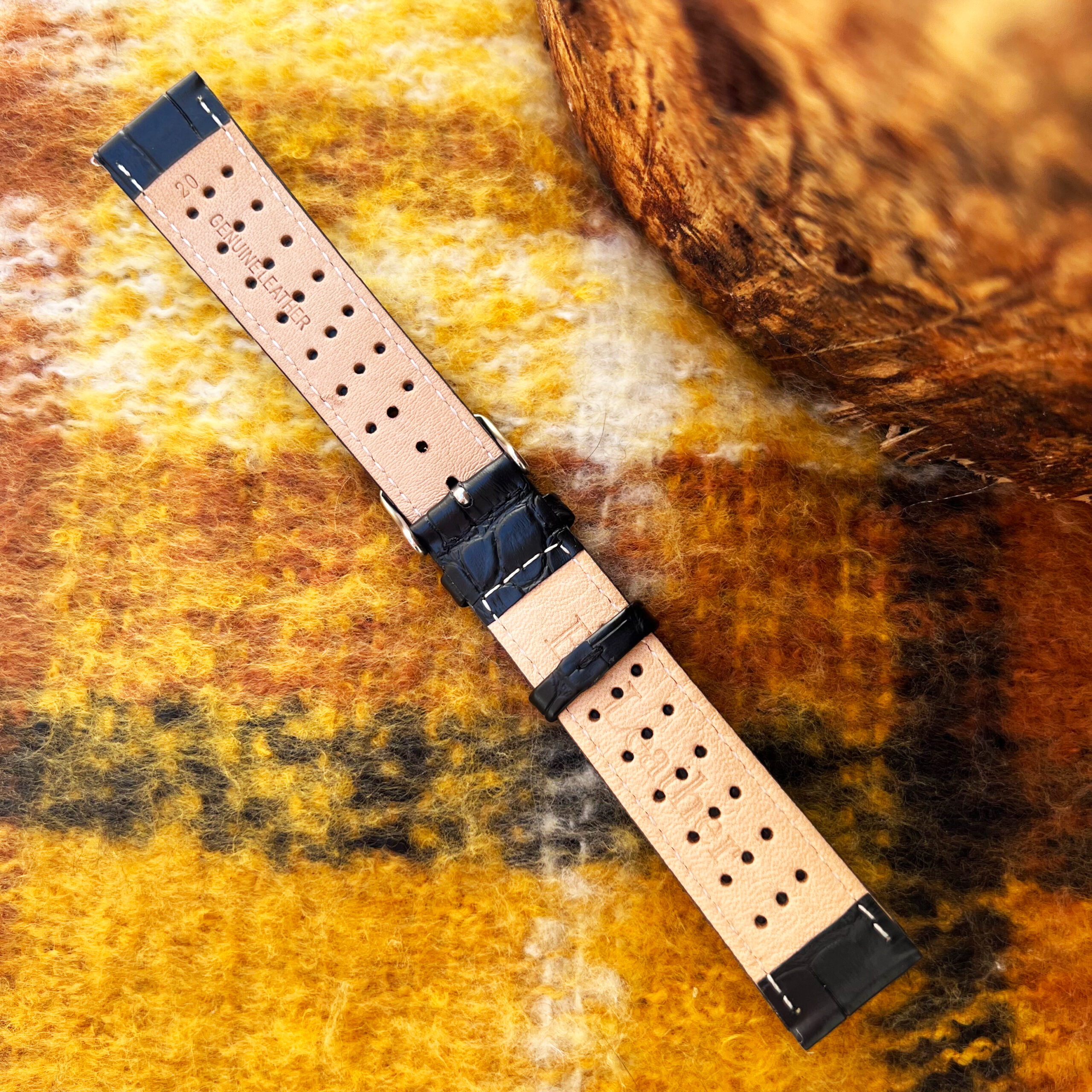 Χειροποίητο ΑΝΤΙΑΛΛΕΡΓΙΚΟ δερμάτινο ΚΡΟΚΟ λουράκι υψηλής αντοχής από Ιταλικό δέρμα, σε κλασσικό σχεδιασμό με ραφή ώστε να ταιριάζει με όλες σας τις εμφανίσεις.
