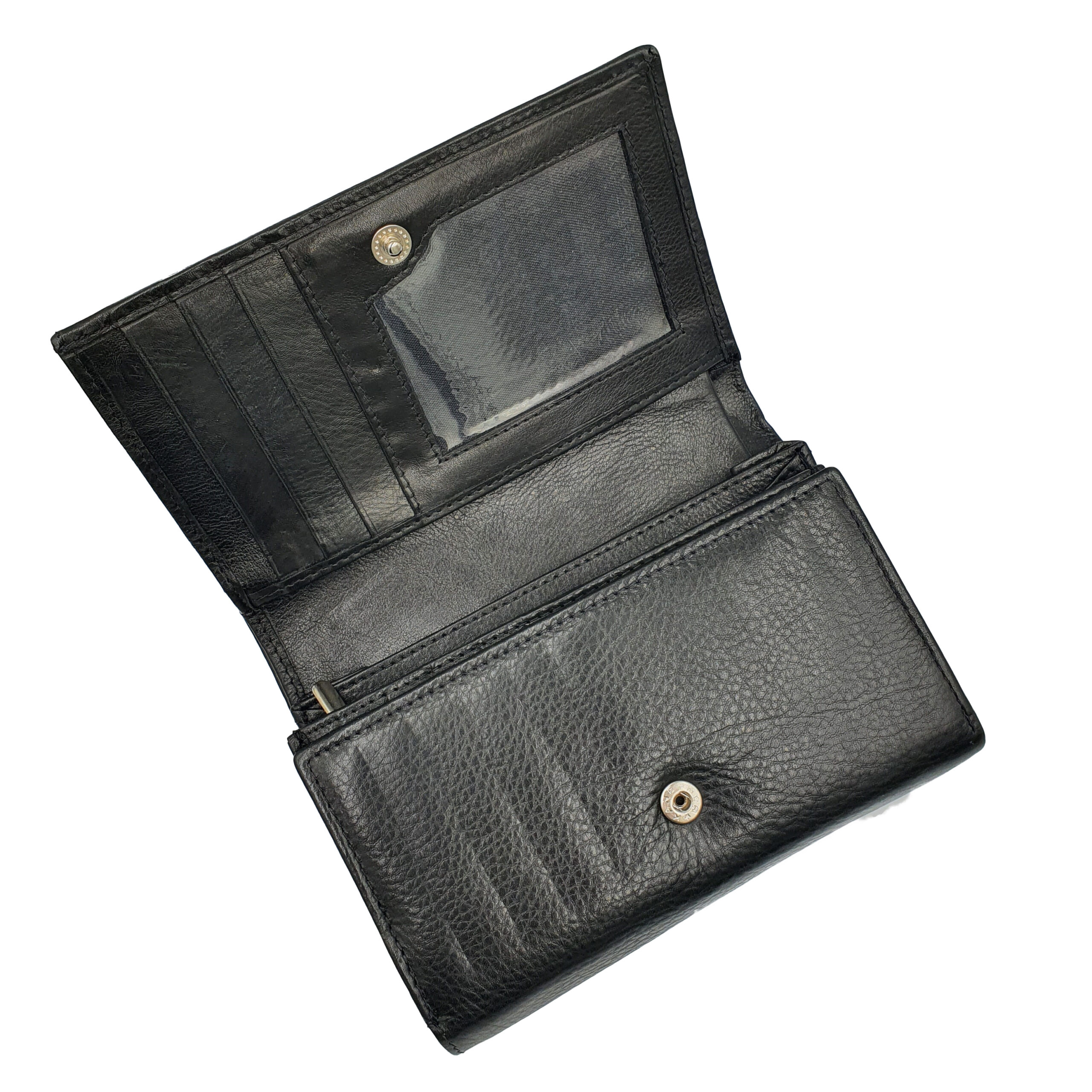 Δερμάτινο γυναικείο πορτοφόλι ‘BERTA’ από Δέρμα εξαιρετικής ποιότητας σε ποικιλία χρωμάτων (μεσαίου μεγέθους) πορτοφόλι με πολλαπλούς χώρους τοποθέτησης χαρτονομισμάτων, εγγράφων, κερμάτων, ταυτότητας και καρτών, που ασφαλίζονται είτε με φερμουάρ είτε με μεταλλικά κουμπώματα .Χρησιμοποιήθηκαν δέρματα φυτικής δέψης (υψηλής ποιότητας μέθοδος επεξεργασίας δερμάτων), χωρίς τη χρήση τοξικών χημικών ουσιών που προκαλούν σημαντική βλάβη στο περιβάλλον.