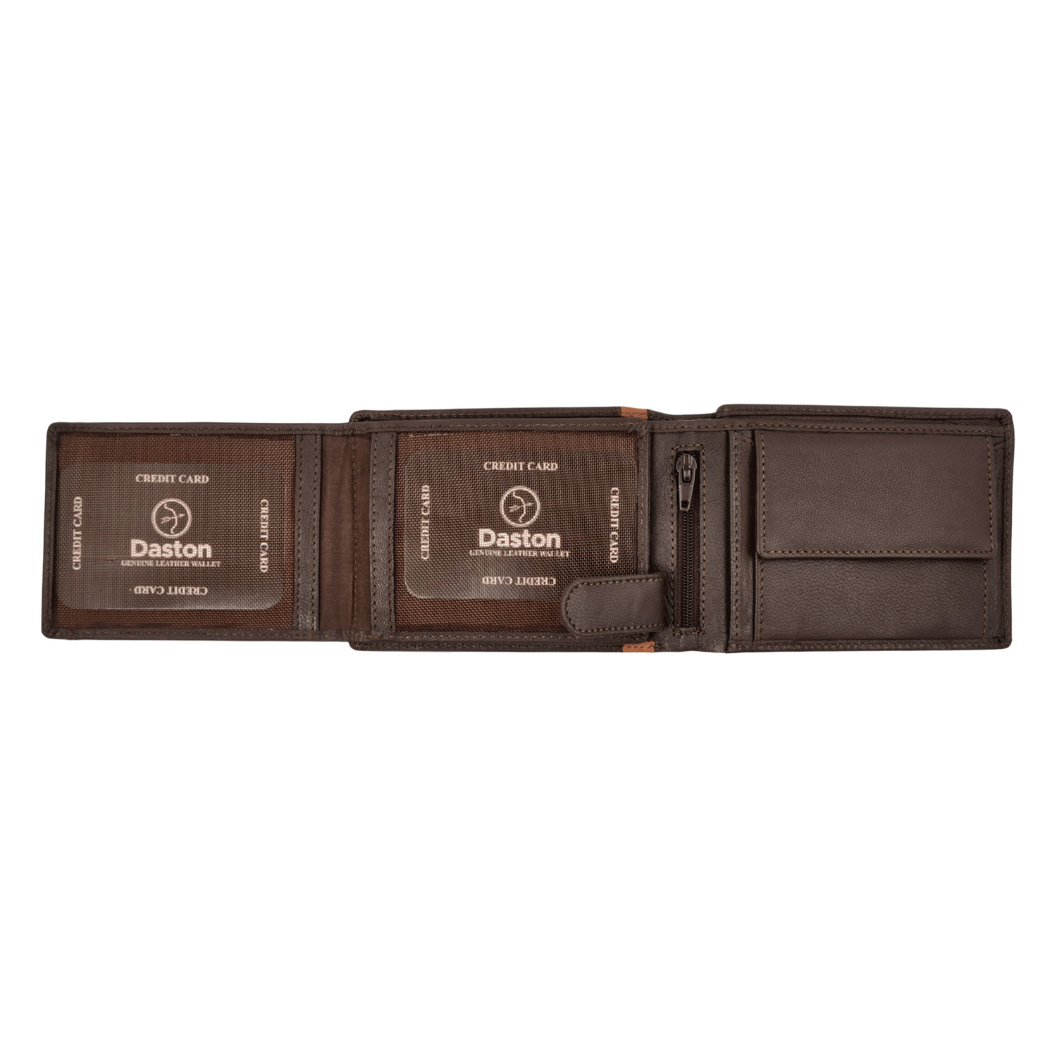 Δερμάτινο ανδρικό πορτοφόλι της εταιρείας Daston κατασκευασμένο από δέρμα με RFID τεχνολογία για την προστασία ανέπαφων συναλλαγών.