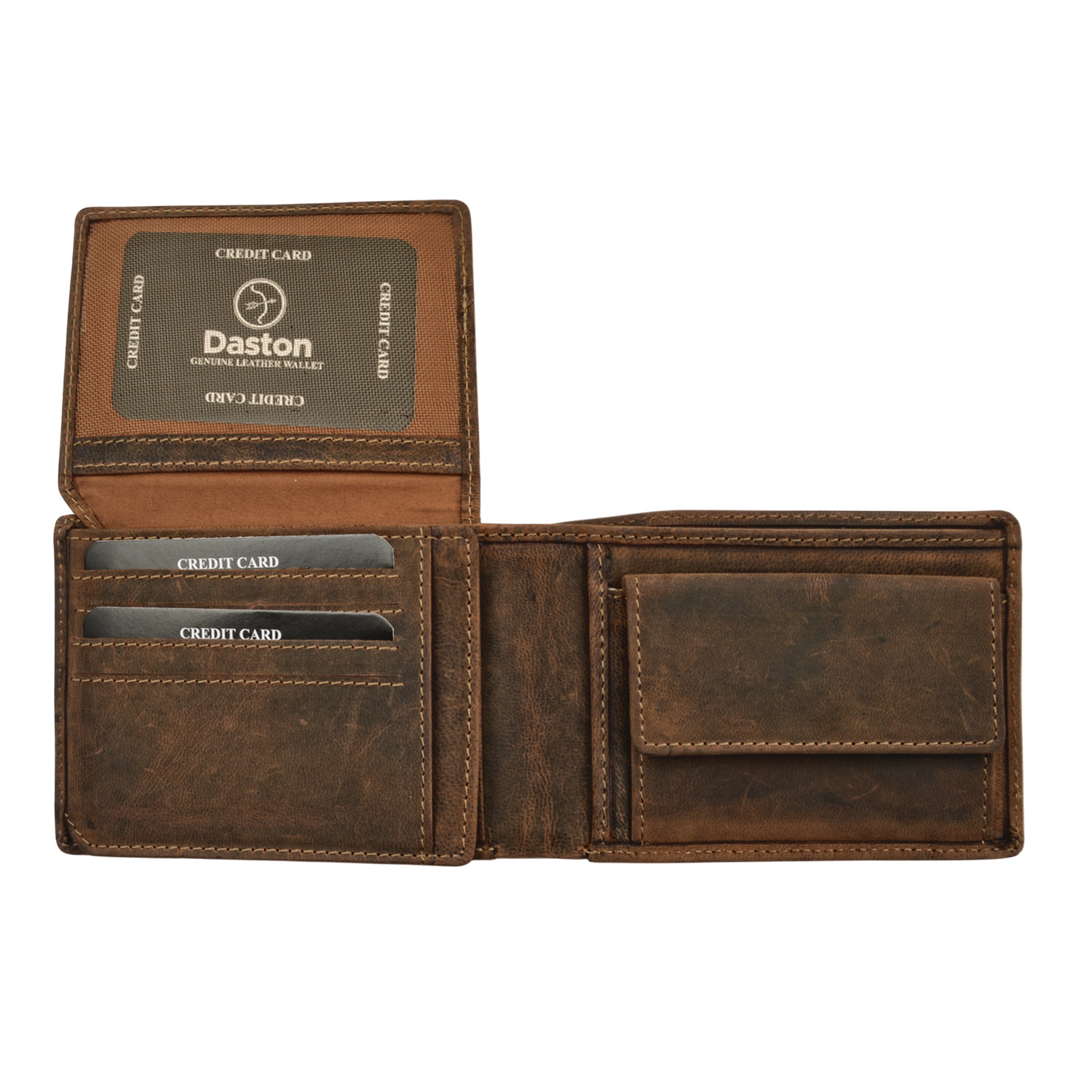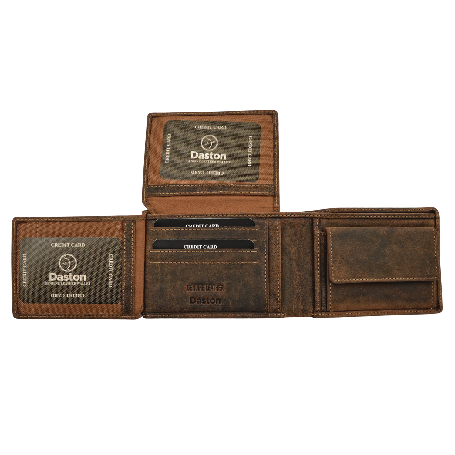 Δερμάτινο ανδρικό πορτοφόλι της εταιρείας Daston κατασκευασμένο από δέρμα με RFID τεχνολογία για την προστασία ανέπαφων συναλλαγών.