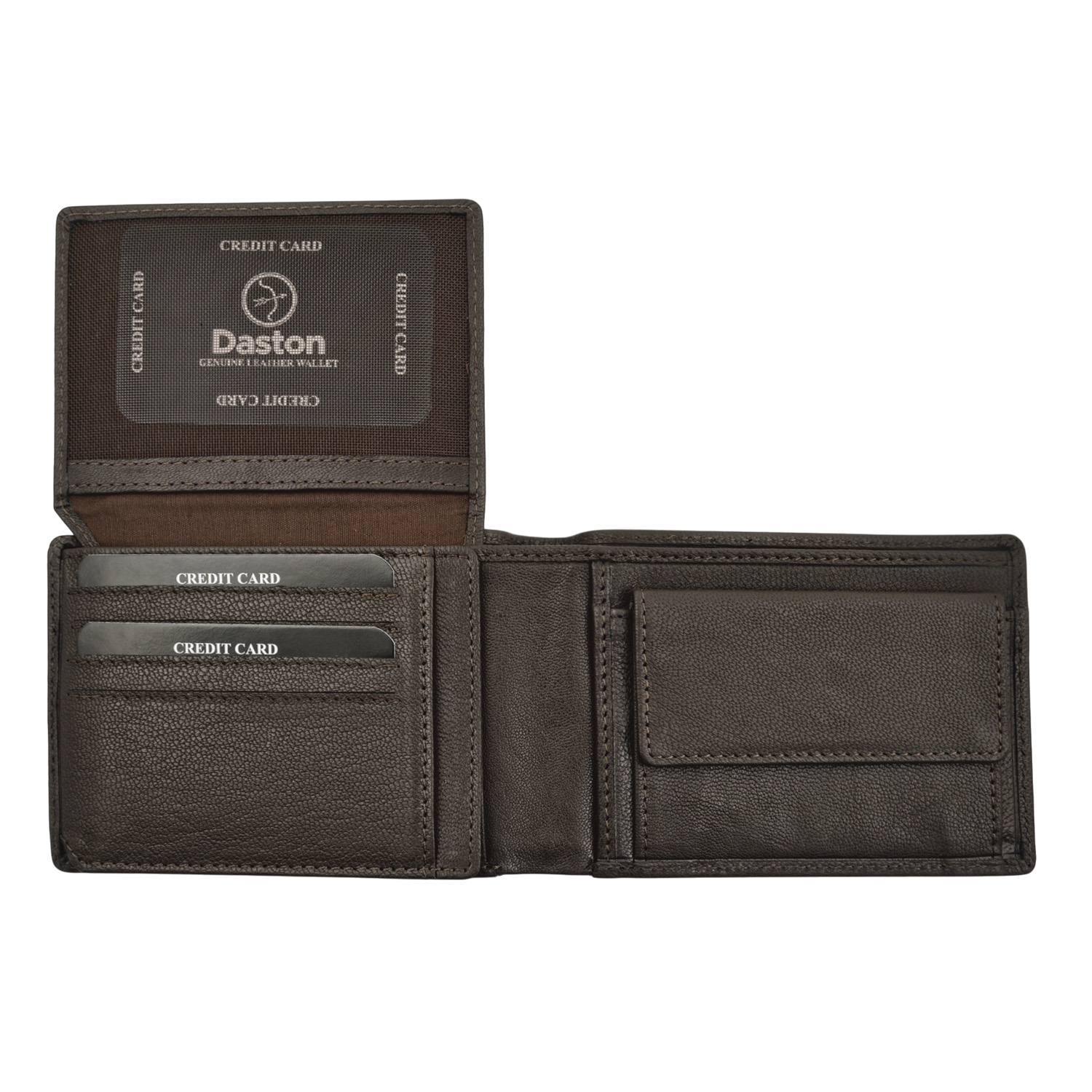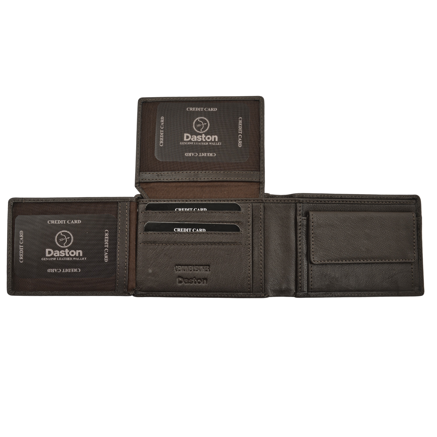 Δερμάτινο ανδρικό πορτοφόλι της εταιρείας Daston κατασκευασμένο από δέρμα με RFID τεχνολογία για την προστασία ανέπαφων συναλλαγών.
