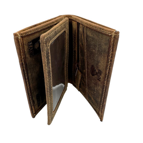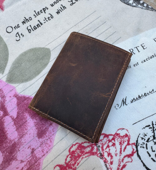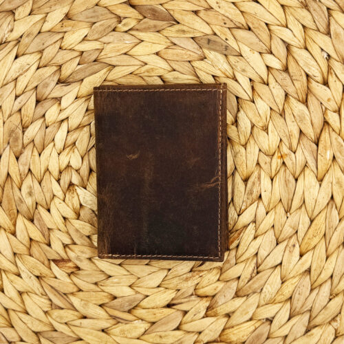Δερμάτινο αντρικό πορτοφόλι από δέρμα εξαιρετικής ποιότητας σε χρώμα καφέ vintage. Αντρικό πορτοφόλι με πολλαπλούς χώρους τοποθέτησης χαρτονομισμάτων, εγγράφων, κερμάτων, ταυτότηταςριβάλλον.